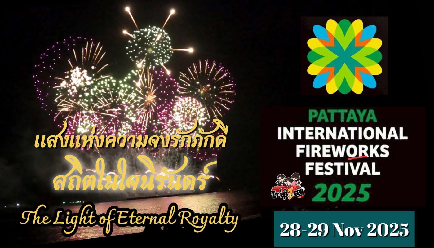 ​เตรียมพบกับปรากฏการณ์แสงสีเสียงที่ยิ่งใหญ่ที่สุดแห่งปี! เมืองพัทยาขอเชิญทุกท่านร่วมงานเทศกาลพลุนานาชาติประจำปี ซึ่งปีนี้จัดขึ้นเพื่อร่วมรำลึกถึงพระมหากรุณาธิคุณอันหาที่สุดมิได้ของ สมเด็จพระนางเจ้าสิริกิติ์ พระบรมราชินีนาถ พระบรมราชชนนีพันปีหลวง